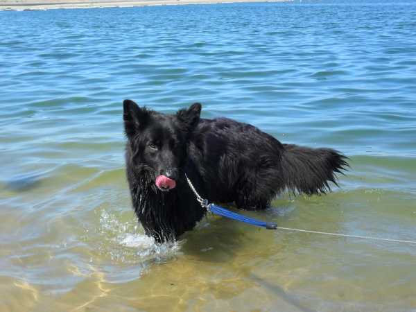 We zijn tussendoor een paar keer gestopt,eerst aan een strandje,waar King even het water in is geweest om af te koelen.